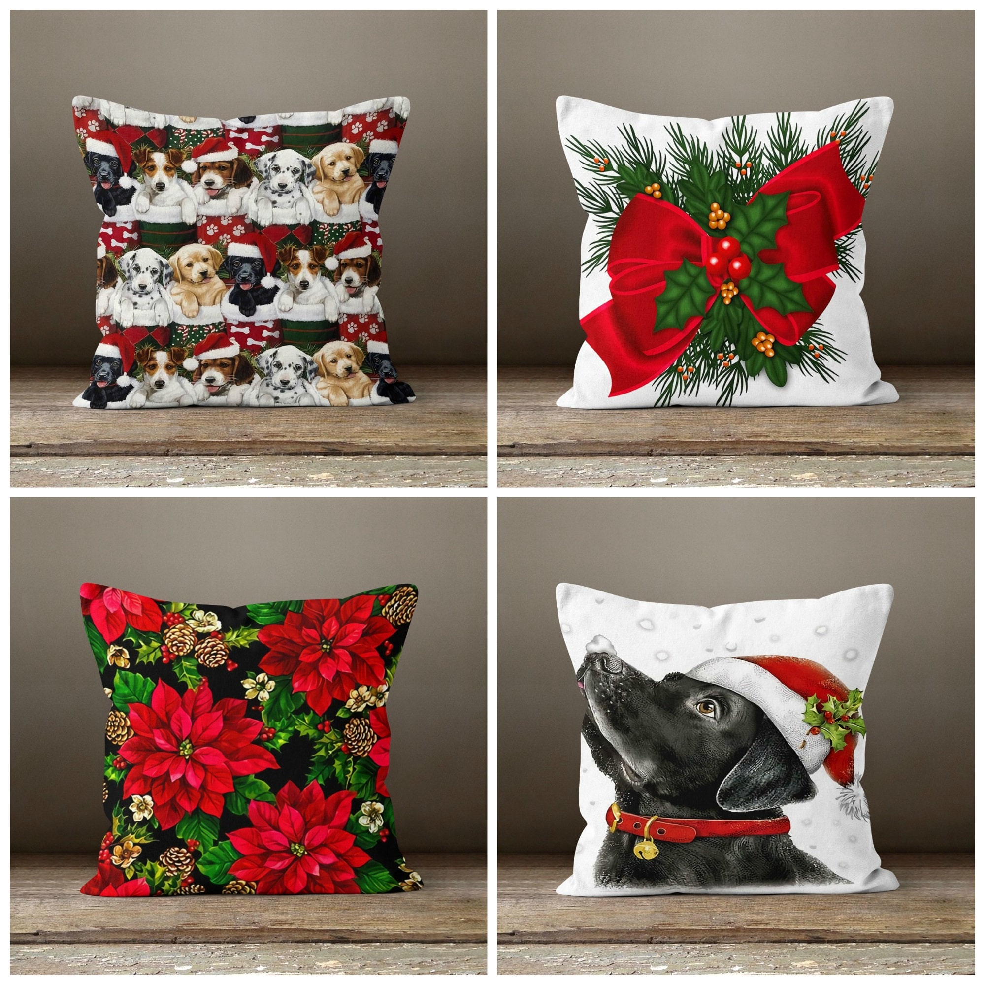 Buy Christmas Pillow Coverschristmas Flower Decordogs Santa Hat Online In India Etsy
