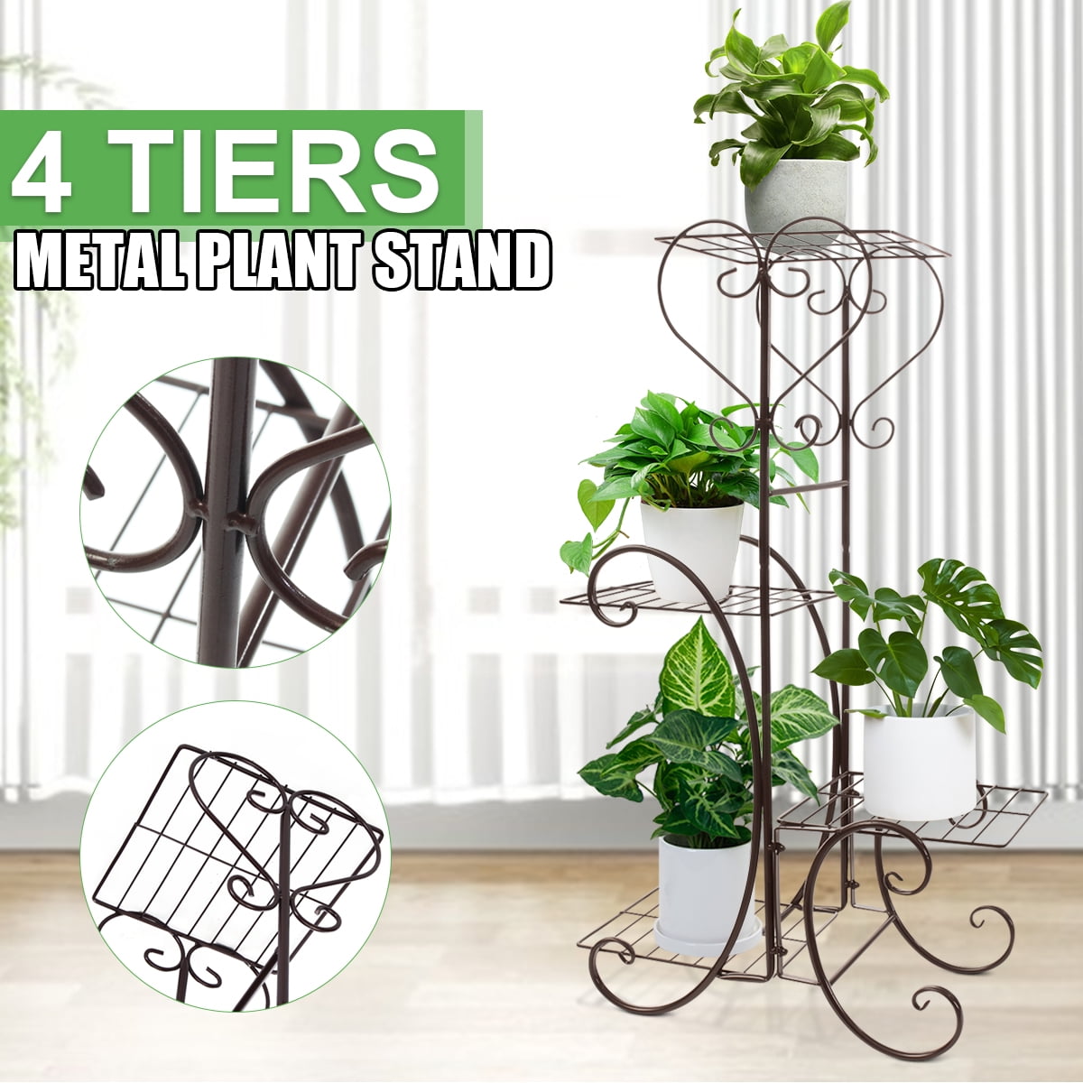 4 In H Tier Plant Stand Indoor Tall Plant Shelf Tiered Metal Plant Holder Flower Display Rack Pots And Planters Puzswg The Home Depot